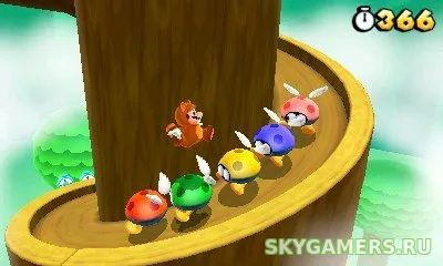 Super Mario 3D Land - это трехмерный платформер, в котором использованы элементы боковой прокрутки серии. На каждом уровне Марио начинает с точки, которую он должен преодолеть, чтобы добраться до флагштока в конце. Уровни населены многими героями серии, такими как Goombas, Koopa Troopas, Cheep Cheeps и т.д., которые пытаются атаковать Марио. Когда на него нападают, он теряет текущий заряд энергии или уменьшается до маленького размера, если он еще не сделал этого, в этом случае он теряет жизнь и должен пройти уровень заново. Если это произойдет несколько раз, игрок может активировать костюм White Tanooki, который даст Марио неуязвимость на этот уровень. Он может снова вырасти до нормального размера, собрав гриб. Некоторые из бонусов, которые может использовать Марио, включают костюм Тануки, который позволяет ему парить в воздухе во время прыжка и использовать вращающуюся атаку, и костюм Цветка, который позволяет ему снова стрелять огненными шарами в том направлении, куда он направлен.
