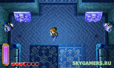 The Legend of Zelda: A Link Between Worlds - это продолжение игры 1991 года The Legend of Zelda: A Link to the Past (хотя на Западе названия двух игр отличаются, в японской версии добавляется только "2"). Игрок управляет Линком, которому предстоит исследовать мир (или два) и преодолеть множество подземелий, чтобы спасти принцессу Зельду и освободить мир от сил зла. Действие игры происходит с видом сверху вниз. В отличие от некоторых предыдущих частей Zelda, Линк может проходить большинство подземелий в свободном порядке. Традиционная тесная связь между каждым из подземелий и одним из предметов Линка, от которого зависит решение подземелья, сохраняется; впервые в серии предметы не спрятаны в соответствующем подземелье, но в большинстве своем доступны в магазине Равио, кроликоподобного лавочника. Крюкобой, молот, ледяной жезл и многие другие предметы можно арендовать и покупать с самого начала приключений Линка: аренда стоит немного, но предмет теряется, если Линк умирает; покупка стоит дороже, но дает постоянное владение предметом, а также возможность дать ему одно улучшение. Энергетический бар, который уменьшается, когда Линкс использует любой истощаемый предмет, и пополняется со временем, заменяет систему "боеприпасов" серии: на этот раз Линк не носит с собой запасы бомб или стрел. Игровой мир, Хайрул, в точности повторяет мир предыдущей игры; однако, в отличие от традиций серии, это приключение ориентировано на мир: многие области мира доступны с ранней стадии игры, а подземелья можно проходить по порядку, по желанию. Двухсторонняя структура игрового мира сохранена. Загадки встречаются не только в подземельях, но и в открытом мире; часть из них связана с 3D-визуальным эффектом игры; из-за этого, хотя A Link Between Worlds можно играть на 2DS, решение некоторых головоломок становится менее интуитивным. Новое умение Линка - сплющивание: будучи двумерным существом, он может скользить по поверхностям, пробираться через узкие проходы и выполнять другие движения, необходимые для преодоления головоломок. На сенсорном дисплее DS отображается карта мира или подземелья; на ней можно делать заметки, расставляя булавки.