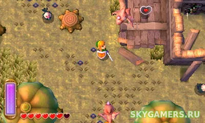 The Legend of Zelda: A Link Between Worlds продолжает историю игры Super Nintendo 1992 года, рассказывая новую историю, которая происходит в королевстве Хайрул. 3D-графика Nintendo 3DS привносит новый уровень глубины в игровой мир, позволяя вам ощутить высоту, как никогда раньше. Возможно, когда-то было трудно отличить уровни этажей, но теперь они совершенно ясны, что придает больше реализма сражениям и исследованию подземелий! The Legend of Zelda: A Link Between Worlds представляет совершенно новый набор головоломок и подземелий! На этот раз Линк может перемещаться по стенам, как если бы он был нарисованный.