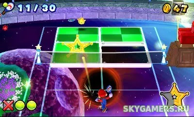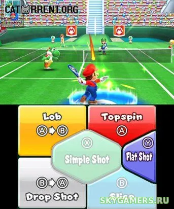 Mario Tennis Open - это первая часть серии Mario Tennis для 3DS, первая портативная игра в полном 3D и первая игра, поддерживающая многопользовательский режим онлайн. Большая часть играбельного состава из Mario Power Tennis возвращается, но ряд других персонажей был удален и заменен новыми играбельными персонажами. Также можно играть за Mii и использовать StreetPass, чтобы бросить вызов другим персонажам Mii в семиочковых матчах и мини-играх Ring Shot. Также впервые в игре появилось множество разблокируемых костюмов и аксессуаров только для вашего Mii, некоторые из которых разблокируются после того, как вы победите Mii персонажей StreetPass определенное количество раз подряд. Аксессуары покупаются в магазине после их разблокировки после победы над соперниками в различных кубках.