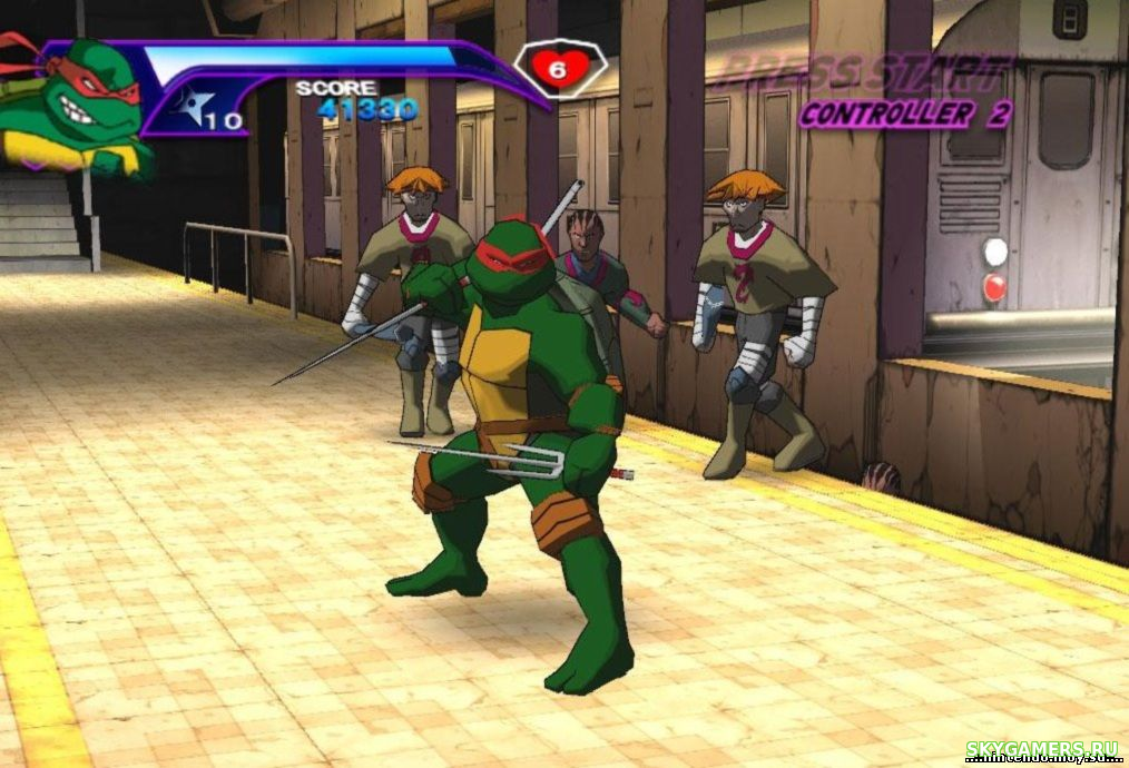 3-мерное воплощение классического 16-битного бит'эм-апа от Конами. Игроки могут выбирать своих любимых черепашек-ниндзя и совершенствовать их навыки в мире, наполненном битвами. Леонардо, Микеланджело, Донателло или Рафаэль путешествуют по улицам Нью-Йорка, спускаются в канализацию, затем взбираются на крыши домов, преодолевая на своем пути сопротивление Шреддера и его приспешников. В игре 2 режима - VS (соревнование 2 игроков) либо Story Mode (1 или 2 игрока), в котором нужно пройти 6 уровней с более чем 35 этапами.